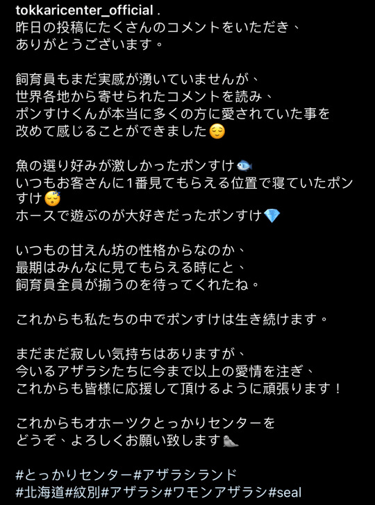 Although our sad feelings still remain, right now the seals have been gushing affection more than ever, and from now on we will do our best so that you all may keep supporting us!